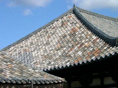 瓦と一口に言ってもいろんな種類が実はあるのです。 形の違いや大きさの違いが一番の違いなんです。 今回はお寺に使われる瓦と住宅に使われる瓦の違いを説明します。 1400年前の瓦が今も現役で屋根に乗っている奈良市にある元興寺の写真です。 THEお寺の屋根…